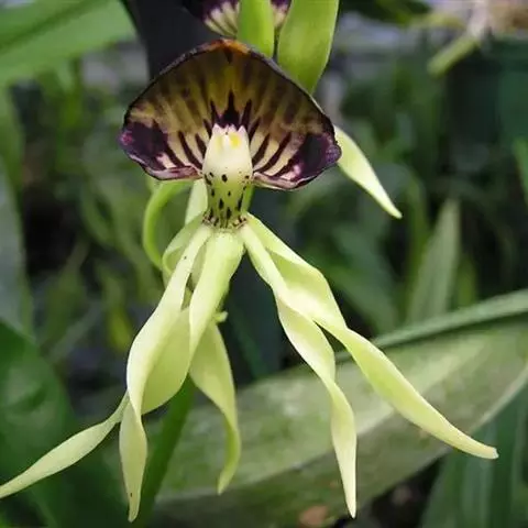 叶淡绿色,主脉白色,叶面具深红色小斑点;