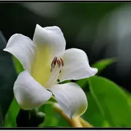 花:花序柄短于叶柄,长10-13厘米(河口标本)。佛焰苞管部卵圆形,长3厘米,外面绿色,内面绿白色、基部常青紫色;檐部长约5厘米,凸尖,白色。肉穗花序:雌花序几与雄花序相等,长约1.5厘米,雄花序纺锤形,长3厘米,中部粗7毫米,向两头渐狭。花期4月(云南河口)。