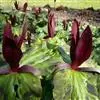 叶米白色,叶面具血红色斑纹。