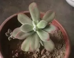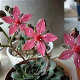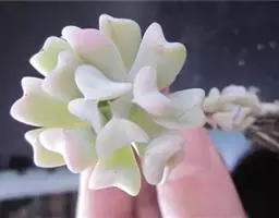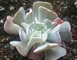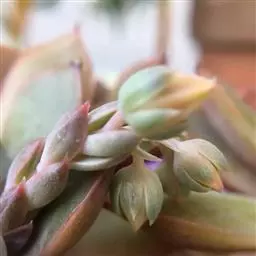 株高5~7厘米,莲座直径一般8~10厘米,老株直径可达20厘米。 叶片肉 露娜莲的花(图:Emmanuelle Aubé) 质,有白色霜粉;卵圆形,先端有小尖,边缘半透明;一般灰绿色,在阳光充足、温差大的环境下变为淡粉色或淡紫色。聚伞花序,花淡红色。 冬季或春季开花。