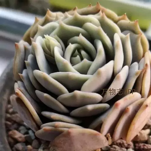 吉娃莲,景天科拟石莲花属,别名:吉娃娃,吉娃莲,植株小型,无茎的莲座叶盘非常紧凑。卵形叶较厚,带小尖,…