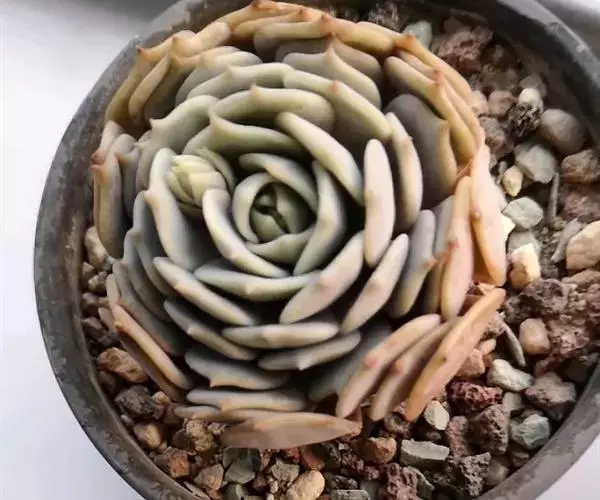大和锦是景天科拟石莲花属的多肉植物。肉质叶排成紧密的莲座状,广卵形至散三角卵形,背面突起呈龙骨状,…