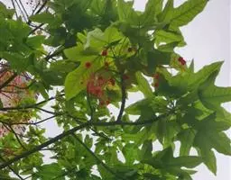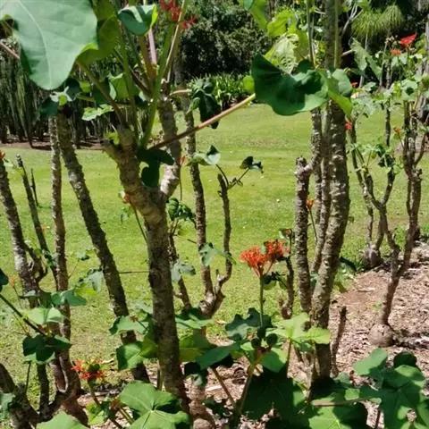 瓶干树又名佛肚树,学名是Jatropha podagrica Hook.,瓶干树的原生地是澳洲的昆士兰及南威尔斯的干燥地带,胖胖的体型被认为是对干旱气候的适应。