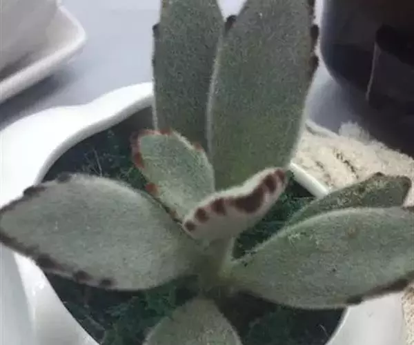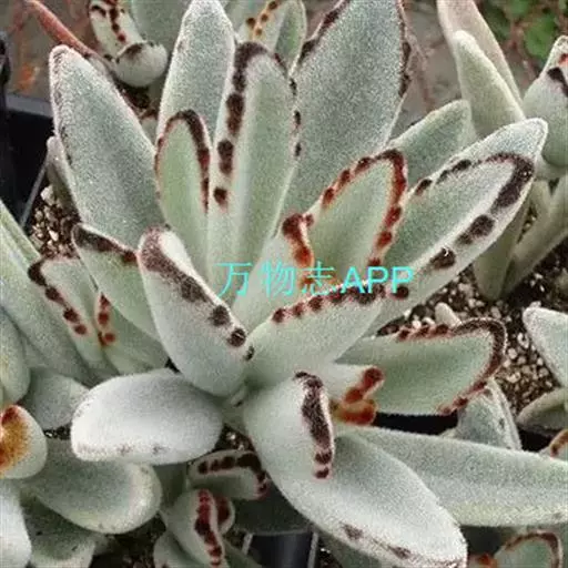 褐斑伽蓝植株被满绒毛,肉质叶片,形似兔耳。叶片边缘着生深褐色斑纹,酷似熊猫,故又有熊猫植物的美称。常用于盆栽观赏,用它装饰客室,乐趣无穷。