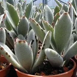 月兔耳应养在全日照的阳光房里。生长期需保持土壤微湿,避免积水。土壤可用了煤渣混合泥炭、少量珍珠岩,比例大概6:3:1。月兔耳在盆土干燥的情况下能耐零下2℃左右的低温,是室内的温度,非露天。整个冬季基本断水,5度以下就要开始慢慢断水了。