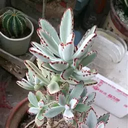 江户紫,景天科伽蓝菜属草本植物,是多年生草本花卉。花白色,但栽培中很少能见到花,常作观叶植物栽培。…
