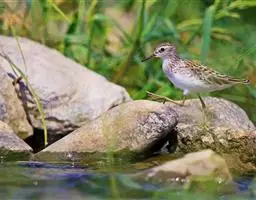 普通鳾(学名:Sitta europaea):是小型鸣禽,体长约13厘米,体重19-24克,体型似山雀,嘴细长而直,约1.5厘米。身体的背面为石板蓝色,具有一条明显的黑色贯眼纹沿头侧伸向颈侧,翅的飞羽为黑色。中央一对尾羽为蓝灰色,其余为黑色。颏喉、颈侧和胸部为白色,腹部两侧栗色,下腹土黄褐色。尖长的鸟喙蓝灰色。眼睛黑色。双腿橙棕色,长爪尖黑色。雌雄同色,雄性个体略大。