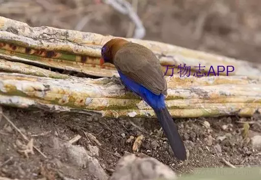 它的头部、喉部、背部及翅膀是深栗色,而 脸部、胸部、腹部 则为紫蓝色,雄鸟 甚至会出现到亮钴色。尾部很长 ( 大 约6.5公分长 )。喙部是粉红色。