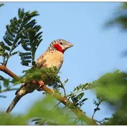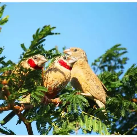 红梅花雀小型鸟类,体长9-10厘米。雄鸟通体朱红色,背、肩、胸等满布白色小斑点,…