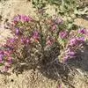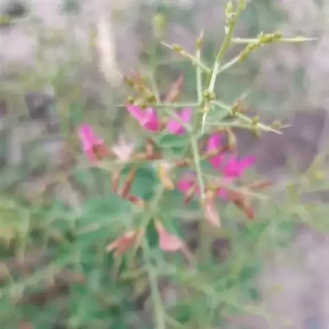 骆驼刺(学名:Alhagi sparsifolia Shap.)属豆科、落叶草本,主要枝上多刺,叶长圆形,花粉红色,6月开花,8月最盛,每朵花可开放20 余天,结荚果,总状花序,根系十分发达,一般长达15-20米。从沙漠和戈壁深处吸取地下水份和营养,是一种自然生长的耐旱植物,这种植物茎上长着剌状的很坚硬的小绿叶,故叫骆驼剌,是草本植物,是戈壁滩和沙漠中骆驼唯一能吃的赖以生存的草,故又名骆驼草。主要分布在内陆干旱地区。