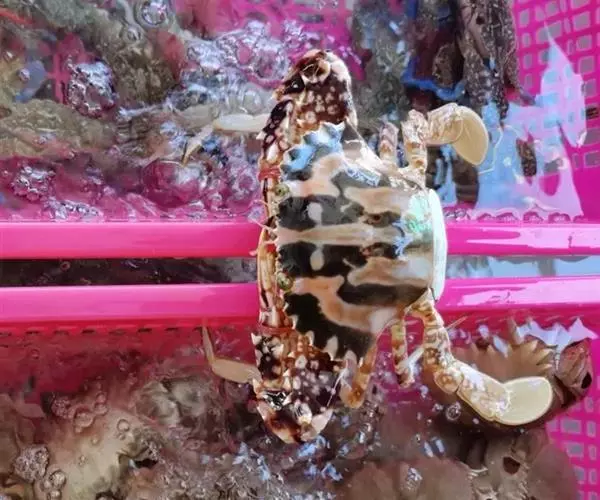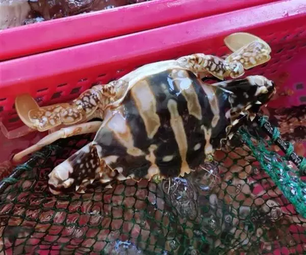 又名花蟹、花市仔、火烧公、十字蟹、花蠘仔,为梭子蟹科蟳属的动物。全身都有红褐色及暗褐色的斑纹,是最醒目的特色。在胃区两侧有突出形成十字形的条纹,好象背着十字架,因此又有人称之为十字蟹。生活环境为海水,多栖息于近岸浅海底或珊瑚礁盘的浅水中。