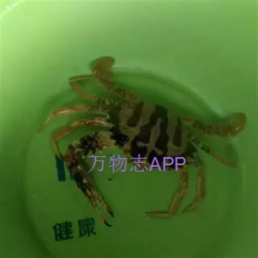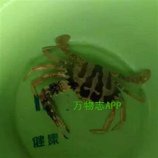 体色: 头胸甲红棕色,具黄色条纹,而中部前方则有一黄色十字交叉纹。螯脚红色并布有黄色斑纹,二指前端为深啡色。