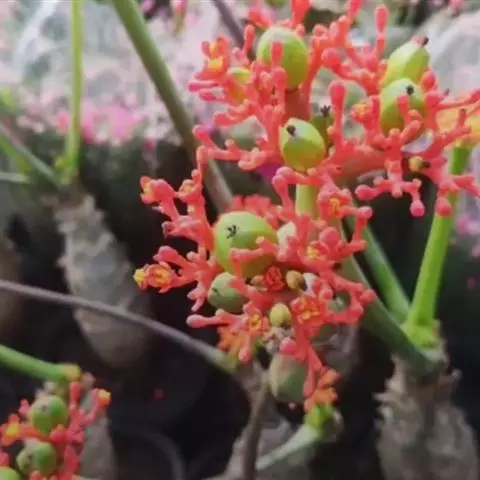 佛肚树是大戟科麻风树属的直立灌木。株高可达1.5米;茎基部或下部通常膨大呈瓶状;枝条粗短,…