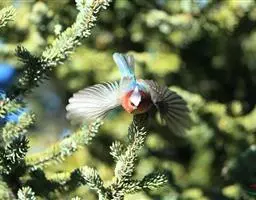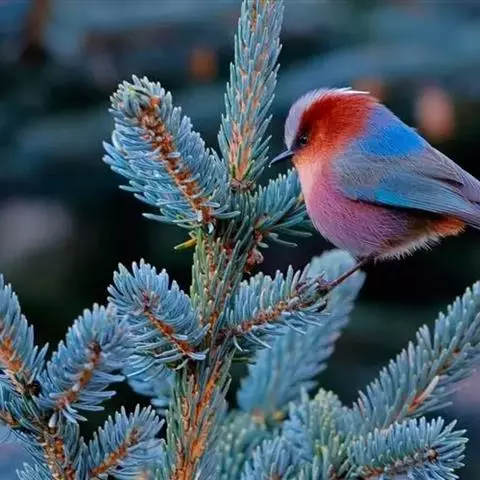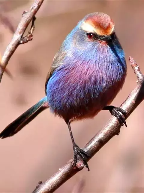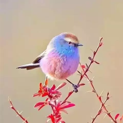 凤头雀莺:小型鸟类。体长9-10厘米,雄鸟呈毛茸茸的紫色和绛紫色,顶冠淡紫灰色,额及凤头白色,尾全蓝。…