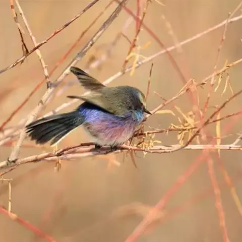 花彩雀莺:体长9-12厘米,是一种毛茸茸偏紫色的雀莺。顶冠棕色,眉纹白。尾长,羽毛松软。…