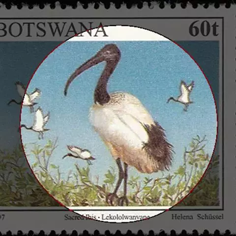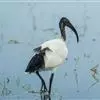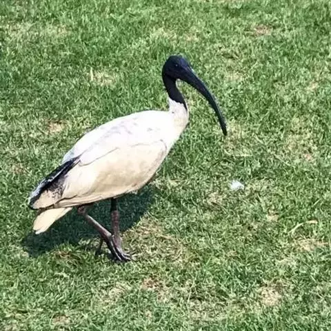 圣鹮头、颈黑色,身体白色,初级和次级飞羽尖端黑色。喙长且厚、黑色下弯,跗蹠与趾黑色。…
