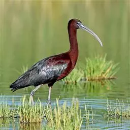 美洲白鹮:是一种大型涉禽。体长56-58厘米,体重750-1050克。头和颈裸出,喙很长,向下弯曲。…