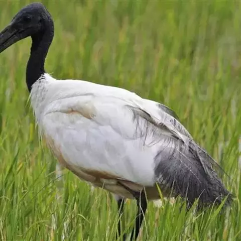 白鹮:体长67-75厘米,通体白色。头部裸露部分至上颈黑色,背腰、尾上及颈的下部有灰色饰羽。嘴黑,…