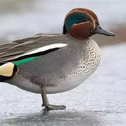 绿翅鸭是小型鸭类,体长37厘米,体重约0.5千克。嘴脚均为黑色。雄鸟头至颈部深栗色,…