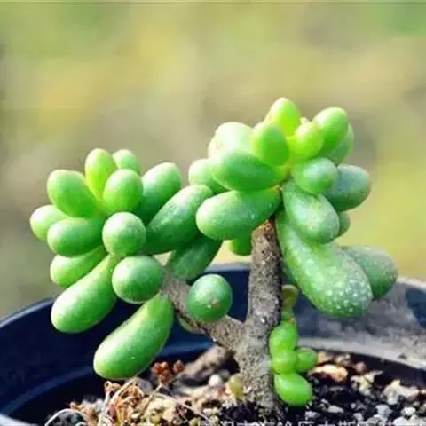 玉缀,别名翡翠景天景天科景天属常绿或半常绿多肉植物。植物匍匐下垂,翠绿色。叶小,多汁,纺锤形,、密…