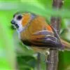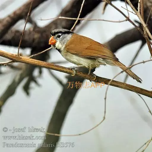 点胸鸦雀是莺科、鸦雀属小型鸟类,体长18-21厘米。头顶至枕橙棕色,嘴橙黄色、短而粗厚,脸皮黄色,…