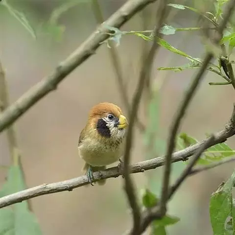 白眶鸦雀是莺科、鸦雀属小型鸟类,体长12-14厘米。嘴黄色、短而粗厚,头顶至后颈褐色沾棕具白色眼圈,…