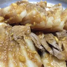 1、 将煎盘中倒入香油放进微波炉2分30秒,取出放入姜片加热1分钟;