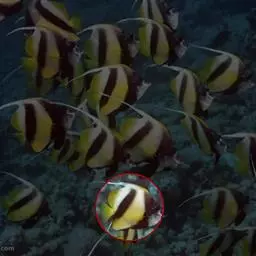 朴蝴蝶鱼 分布广,数量亦较多,为我国沿海产蝴蝶鱼类中最常见种,分布于北太平洋西部,我国产于南海和东海,栖息于近海珊瑚礁或岩石间,小型鱼,体长一般50~90毫米。