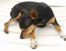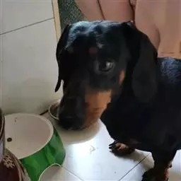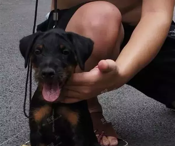 身材短小紧凑。头部伸长,吻端不尖,有点像楔形,吻部比颅部稍短。颅 德国猎梗犬 骨平坦,两耳间较宽阔,两眼间较狭窄。鼻子与吻部协调,不太窄也不太小,黑色,但披毛颜色是棕褐色的往往鼻子颜色也相同。脸颊丰满,上下颚有力,牙齿强健,剪状咬合。眼睛黑色,较小,卵形,神态坚定。耳朵耳根高,V形,向前折叠,属半直立耳。颈部健壮,不太长。背线直,背结实健壮。腰部肌肉良好。臀部肌肉丰满而平滑。胸部深,不太宽。肋部扩张良好。复线后收。尾巴断尾。肩部较长,肌肉发达。前肢直而平行,后肢骨量充足,肌肉发达。前足比后足宽,后足卵圆形。足趾紧凑,足垫厚而结实。披毛密实,硬而粗糙的毛或粗糙平滑的短毛。通常的毛色是黑色带褐色斑纹。身体毛色是黑色的,褐色一般限于足部、后臀、颊部、两眼上面、耳朵内侧、尾巴根部,颜色分布同多伯曼狗相似。其他可接受的毛色有黑褐色、褐色、棕色、红色和鼠灰色带斑纹。足趾和胸前可以有小块白色。