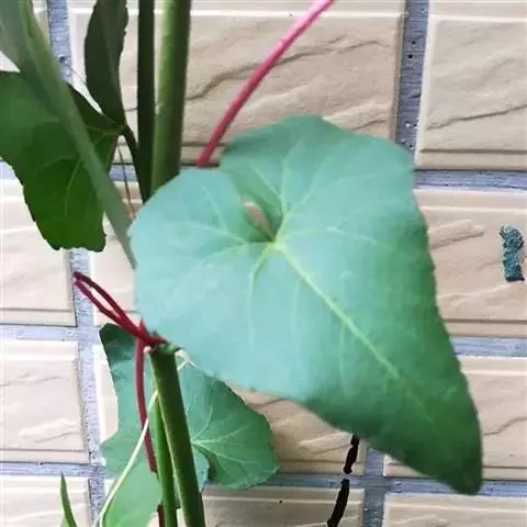 草质藤本。小枝圆柱形,有纵棱纹,常被白粉,无毛。卷须2叉分枝,相隔2节间断与叶对生。叶心状卵圆形,长5-13厘米,宽4-9厘米,顶端急尖或渐尖,基部心形,边缘每侧有9-12个细锐锯齿,上面绿色,下面浅绿色,两面均无毛;基出脉3-5,中脉有侧脉3-4对,网脉不明显;叶柄长2.5-7厘米,无毛;托叶褐色,膜质,肾形,长5-6厘米,宽2-3厘米,无毛。花序顶生或与叶对生,二级分枝4-5集生成伞形;花序梗长1-3厘米,无毛;花梗长2-4毫米,几无毛;花蕾卵圆形,高约4毫米,顶端圆钝;萼杯形,边缘全缘或呈波状,无毛;花瓣4,卵状三角形,高约3毫米,无毛;雄蕊4,花药卵椭圆形,长略甚于宽或长宽近相等;花盘明显,微4裂;子房下部与花盘合生,花柱近钻形,柱头不明显扩大。果实倒卵圆形,长0.8-1.2厘米,宽0.4-0.8厘米,有种子1颗,种子倒卵圆形,顶端圆形,基部有短喙,表面有稀疏突出棱纹,种脐在种子背面下面1/4处与种脊无异,种脊突出,腹部中棱脊突出,向上达种子上部1/3处,侧洼穴呈沟状,达种子上部。花期7-10月,果期11月至翌年5月。