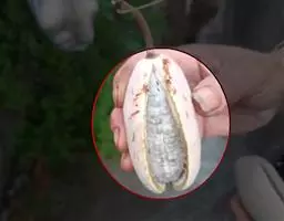 花雌雄同株,白色,数朵组成总状花序;花序长3.5-7厘米,2至多个簇生,与叶同自芽鳞片中抽出;总花梗纤细;小苞片线状披针形,长约4毫米。雄花:萼片近肉质,外轮3片狭披针形或卵状披针形,长10-12毫米,宽2.5-4毫米;内轮3片狭线性,长8.5-9毫米,宽0.8-1毫米;雄蕊长5.5-6毫米,花药不等长,分离,直,顶端完全无凸头,花丝长3.5-4毫米,上部稍分离,下部合生为细圆筒状;退化心皮丝状。雌花:萼与雄花的相似;心皮3,卵状圆柱形,长约4毫米,柱头近头状;退化雄蕊鳞片状,直径约0.2毫米。果长圆形,长可达7厘米,宽4厘米,厚3厘米,两段略狭,果皮熟时黄色,干后变黑色,平滑或有不明显的小疣点。花期4-5月,果期8-10月。