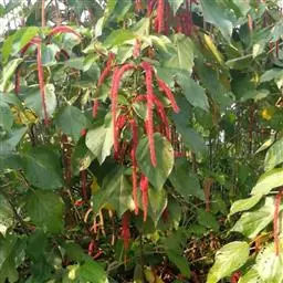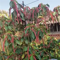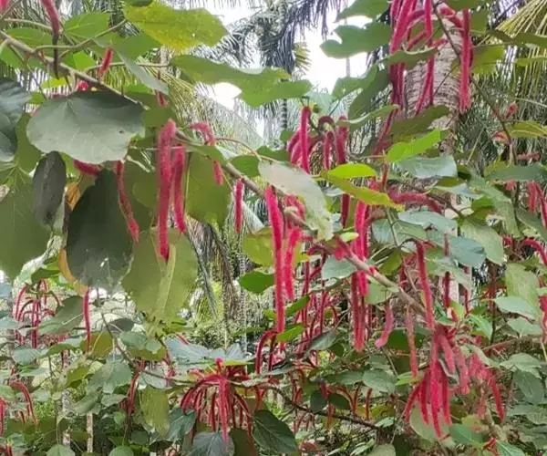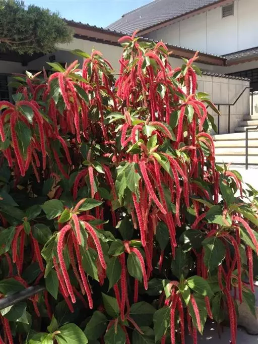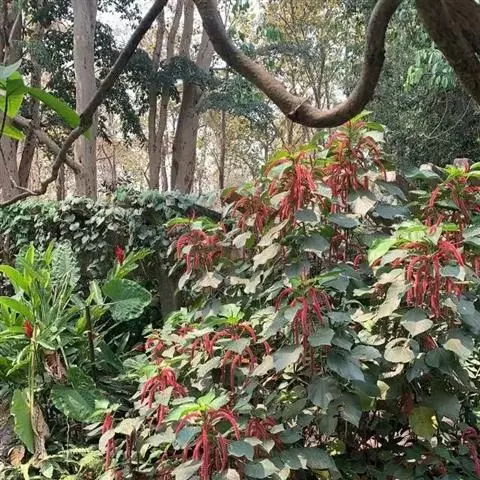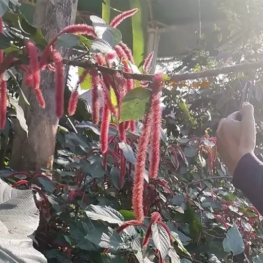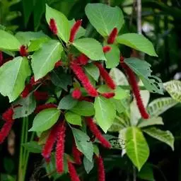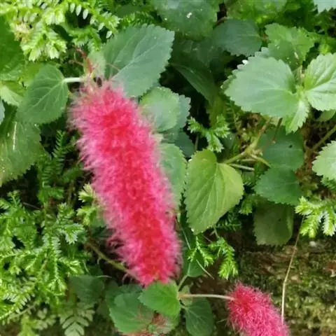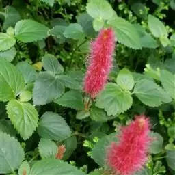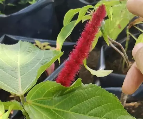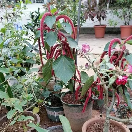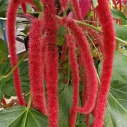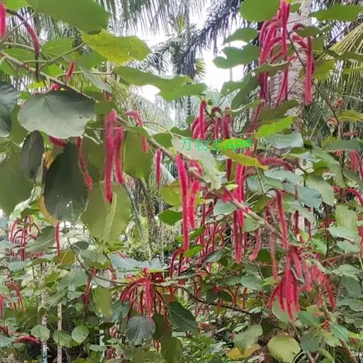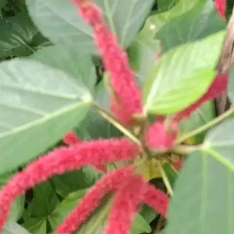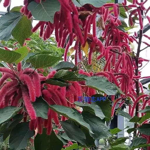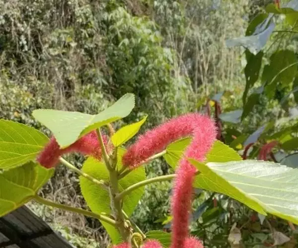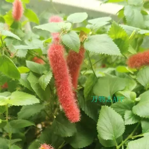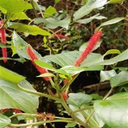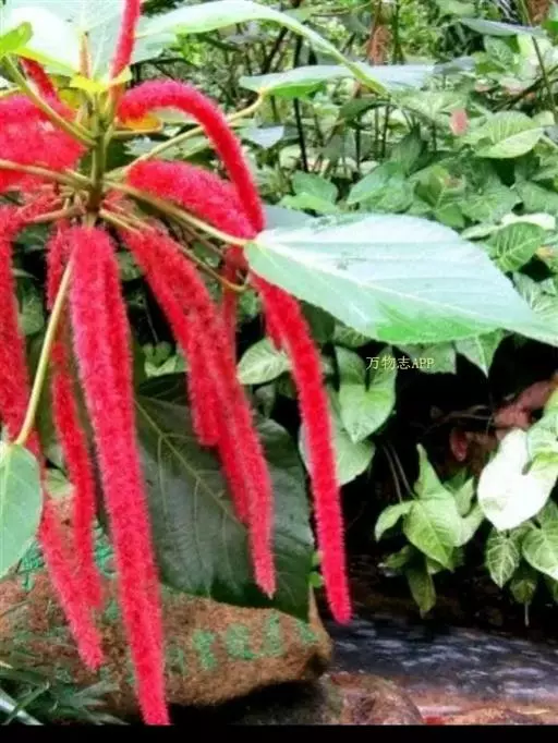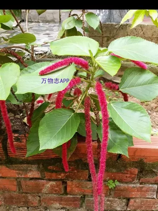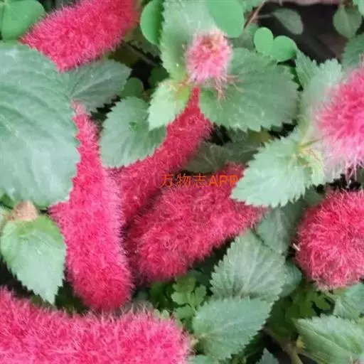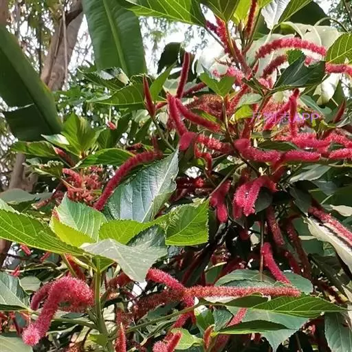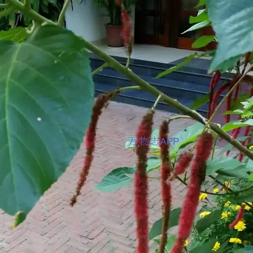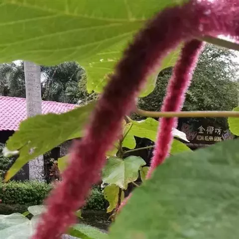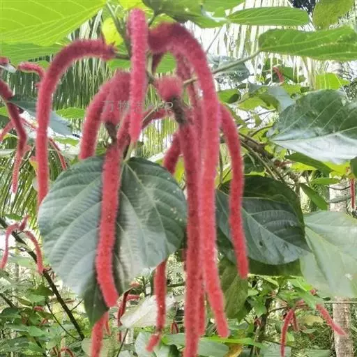 红穗铁苋菜(学名:Acalypha hispida Burm. F.):为大戟科、铁苋菜属植物,灌木,高0.5-3米。嫩枝被灰色短绒毛,毛逐渐脱落,小枝无毛。 花序色泽鲜艳,葇荑花序下垂,如狐狸尾状,雌花近卵形,长约0.8毫米,顶端急尖,具短毛;子房近球形,密生灰黄色粗毛,花柱3枚,红色或紫红色;花期2-11月。