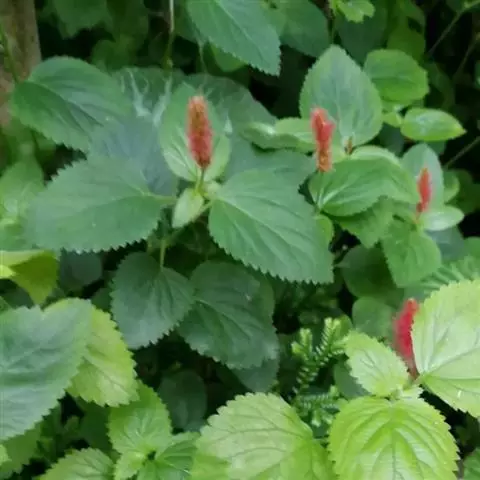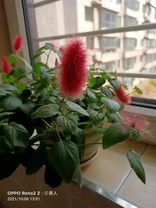 猫尾红的叶是双叶互生,呈卵形状,顶端尖且叶缘有细齿分布,两面有毛覆盖生长。