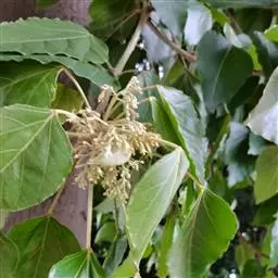 花雌雄异株,雌花序腋生,穗状,长15-30厘米,下垂,花序轴被柔毛;雌花苞片卵状菱形,散生,长约1毫米,全缘,外面具柔毛,苞腋具雌花3-7朵,簇生;雌花:萼片4(-3)枚,近卵形,长约0. 8毫米,顶端急尖,具短毛;子房近球形,密生灰黄色粗毛,花柱3枚,长6-7毫米,撕裂5-7条,红色或紫红色;雄花序未见。蒴果未见。花期2-11月。