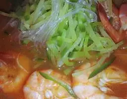 材料:新鲜中虾约500克,蒜蓉2汤匙,红椒半只,葱粒1汤匙,香菜少许,老抽及生抽各1/2汤匙。