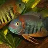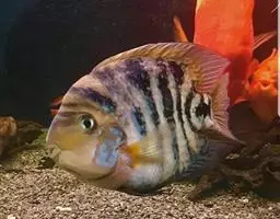金菠萝鱼,Cichlasoma severum,慈鲷科丽体鱼属。成鱼体长20~25cm,厚侧扁形,…
