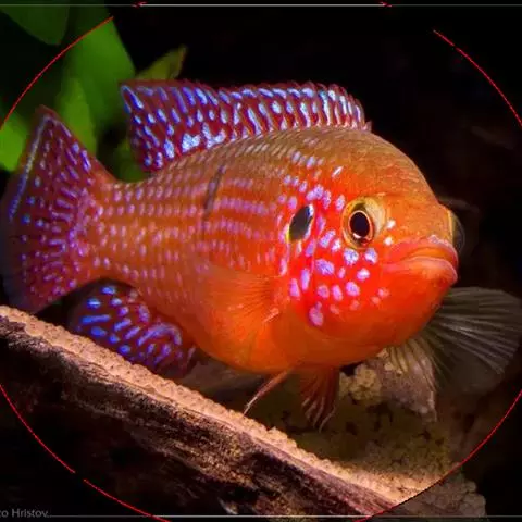 红魔鬼鱼,学名为厚唇双冠丽鱼,也叫火鹤鱼,是慈鲷科丽体鱼属下的一种观赏鱼类。血鹦鹉鱼的父本鱼种。…