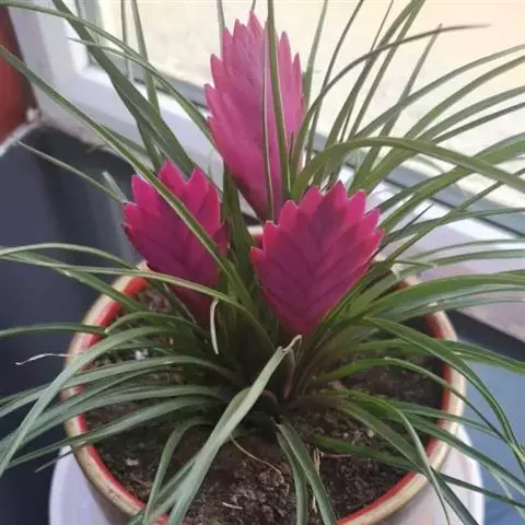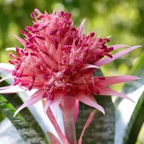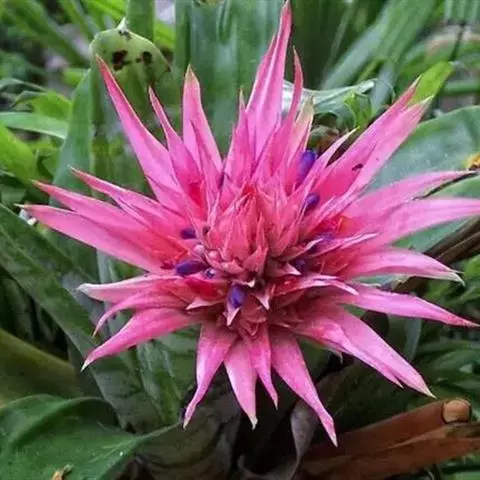 紫花凤梨,是凤梨科铁兰属的多年生草本植物。株高不及30厘米;叶片拱状线形,叶丛族生于短缩茎上,…