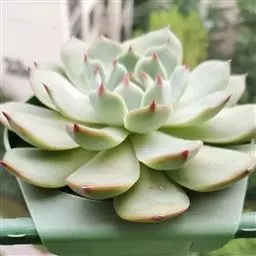吉娃莲,景天科拟石莲花属,别名:吉娃娃,吉娃莲,植株小型,无茎的莲座叶盘非常紧凑。卵形叶较厚,带小尖,…