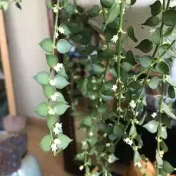 串钱藤 串钱藤原产于澳洲,又叫纽扣藤、纽扣玉藤、百万心,学名为Dischidianummularia,属于萝藦科眼树莲属的多年生草本植物。叶色鲜绿带点银灰色,肥厚多肉,植株具蔓性,可攀附或垂坠生长,春季开黄色或白色花朵。