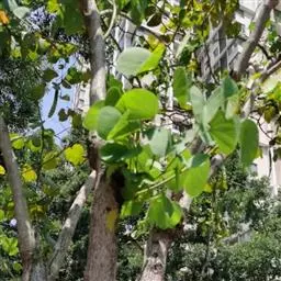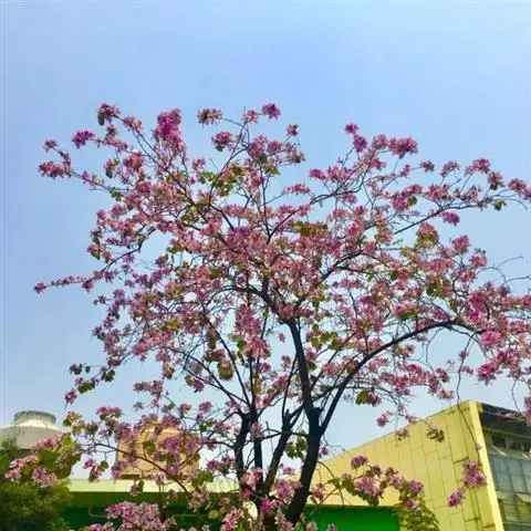 洋紫荆:落叶乔木;树皮暗褐色,近光滑;幼嫩部分常被灰色短柔毛;枝广展,硬而稍呈之字曲折,无毛。叶近…