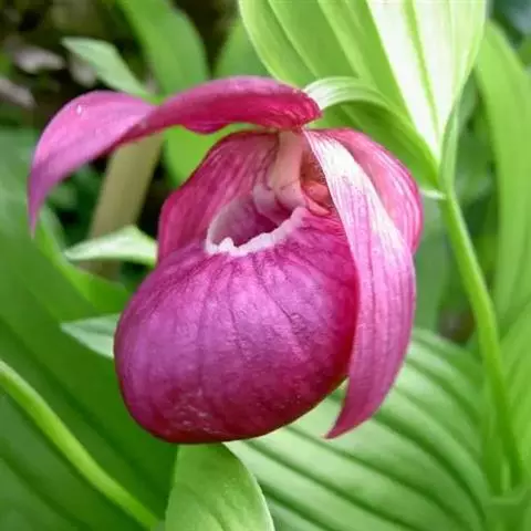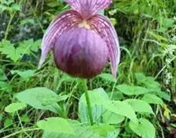大花杓兰因其形状酷似一个口小肚大的囊袋,又名“大口袋兰”。花体呈紫红色,花朵直径5厘米至6厘米,…