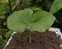 方法一 准备好兰盆及植料后,将兰株倒拿(根在上,叶在下)放于水龙头下以慢水冲洗,但水压切忌过强,以免伤兰根及叶子。用拇指和食指抓住兰头,小指抵住盆缘,用竹筷将根固定,当放入盆内时,尽量不要让根接触到盆壁。将豆粒大的混合石砾倒入盆底至三分之一处。然后倒入中粒植料至五分之四处,填实和尽量不要留下空间。将竹筷拔出,并摇实盆中植料。填实植料后,再用大粒植料埴入至距盆缘1.5厘米处。最后再倒入豆粒大植料,以将假鳞茎全部埋入土中为度,然后充分摇实。用压土工具轻压植料,并将表面弄平。种植完毕后,植料在盆中以中央稍高为好。