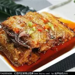 干烧小黄鱼 是由黄鱼等制作的食物,配料是葱、姜、蒜。