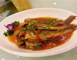 雪菜蒸黄鱼是一道菜名,主要配料有大黄鱼等。