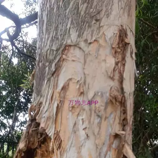 白千层 乔木,高18米;树皮灰白色,厚而松软,呈薄层状剥落;嫩枝灰白色。