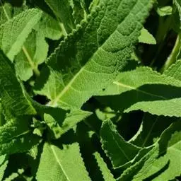 华鼠尾草 茎方柱形,长20-70cm,直径1-4mm,单一或分枝;表面灰绿色或暗紫色,有白色长柔毛,以茎的上部及节处为多;质脆,易折断,折断面椭部白色或褐黄色。叶多卷曲,破碎,有时复叶脱落,仅见单叶,两面被白色柔毛,下面及叶脉上较明显,轮伞花序多轮,集成假总状,花冠二唇形,蓝紫色,多已脱落,宿萼筒外面脉上有毛,筒内喉部有长柔毛。小坚果椭圆形,褐色。气微,味微苦、涩。以叶多、色绿、带花者为佳。