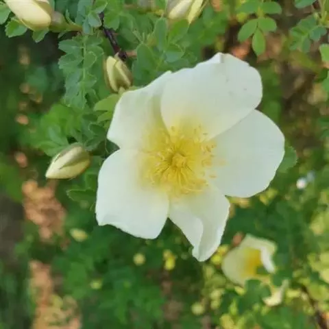 白蔷薇:直立灌木,高约2米;小枝有不等钩状皮刺,有时混有刺毛。小叶通常5,稀7,宽椭圆形或卵形,…