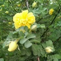 黄刺玫是蔷薇科蔷薇属的直立灌木。高2-3米;枝粗壮,密集;小叶片呈宽卵形或近圆形,边缘有圆钝锯齿,…