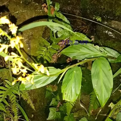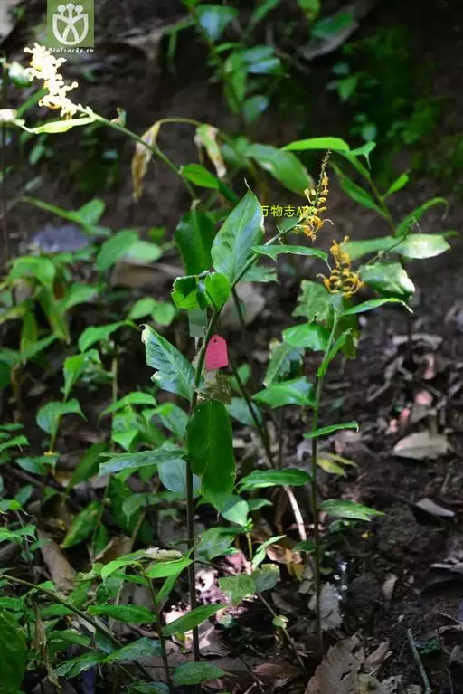 舞花姜(学名:Globba racemosa Smith)姜科,舞花姜属多年生草本植物,株高可达1米;茎基膨大。叶片长圆形或卵状披针形,顶端尾尖,基部急尖,叶片二面的疏毛或无毛,叶舌及叶鞘口具缘毛。圆锥花序顶生,苞片早落,花黄色,各部均具橙色腺点;花萼管漏斗形,裂片反折,侧生退化雄蕊披针形,与花冠裂片等长;唇瓣倒楔形,花药两侧无翅状附属体。蒴果椭圆形,6-9月开花。
